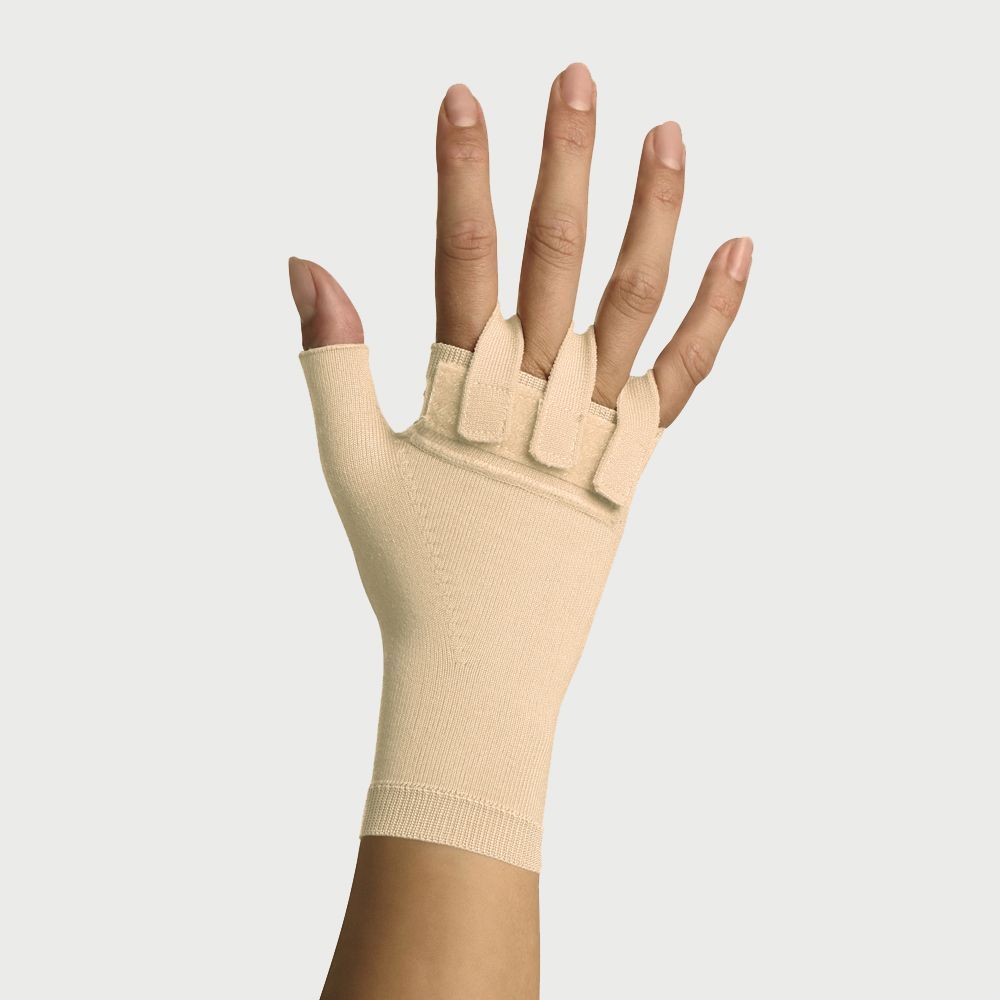 - Parmak aralarındaki boşluklara kompresyon uygulamak için elastik ve ayarlanabilir şeritler.